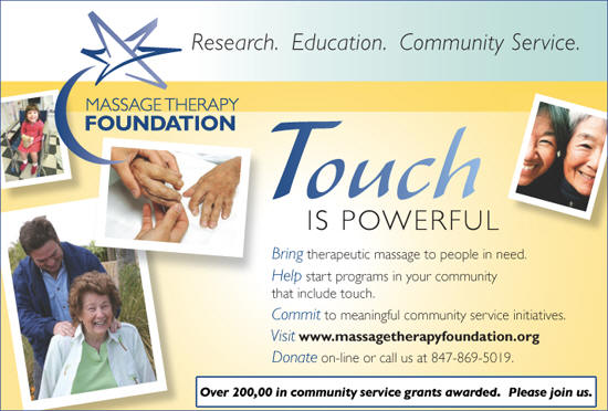 The Massage Therapy Foundation advances the knowledge and practice of massage therapy by supporting scientific research, education and community service.